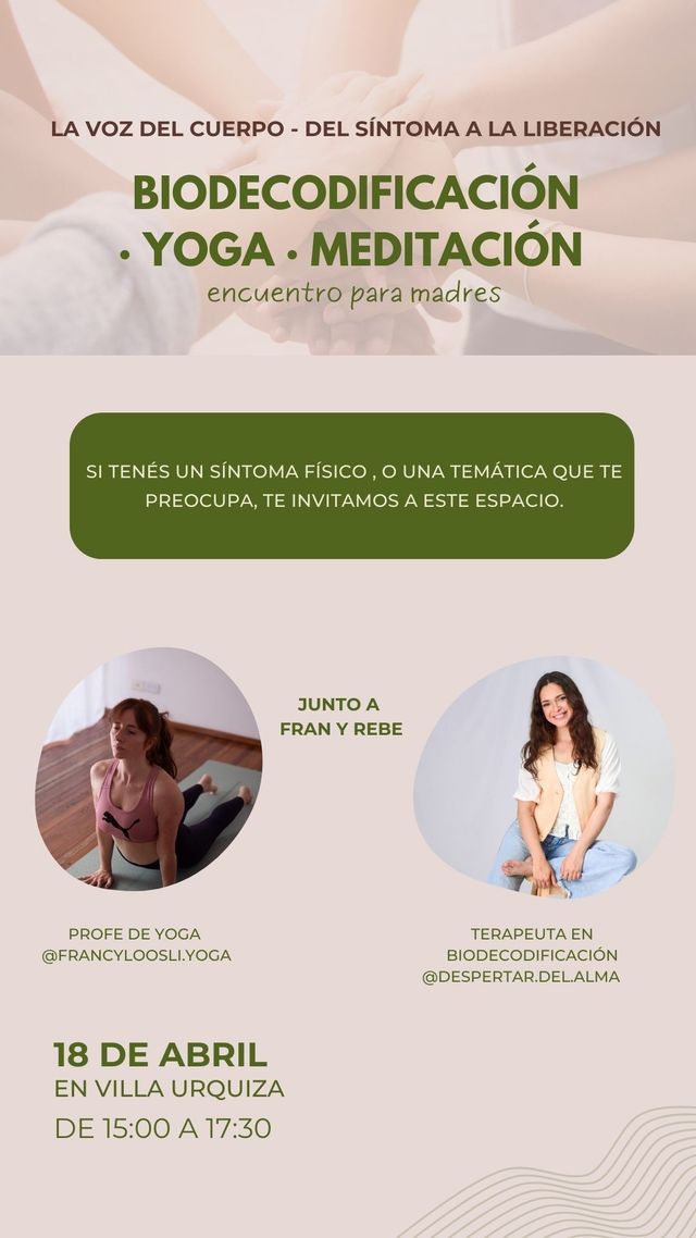 La voz del cuerpo es un encuentro vivencial, donde vas a poder comprender tu síntoma para poder liberar las emociones que hay detrás, combinandolo con Yoga y meditación para que puedas conectar con tu cuerpo y regular tu sistema nervioso.