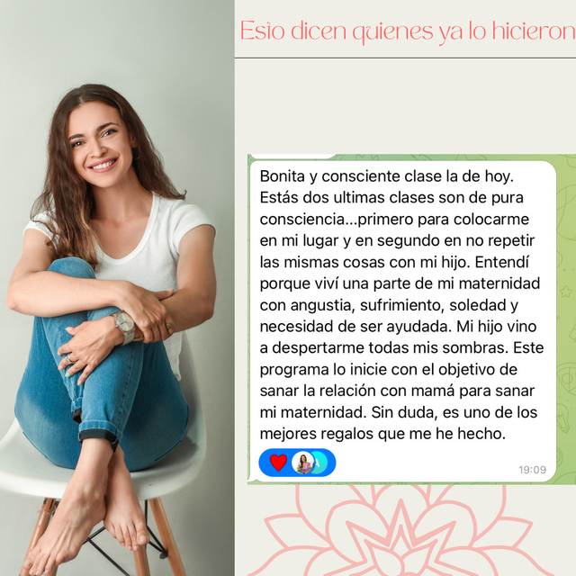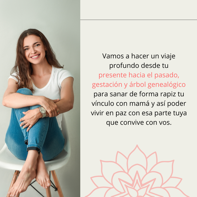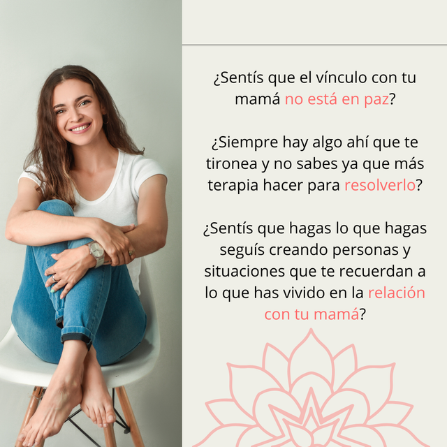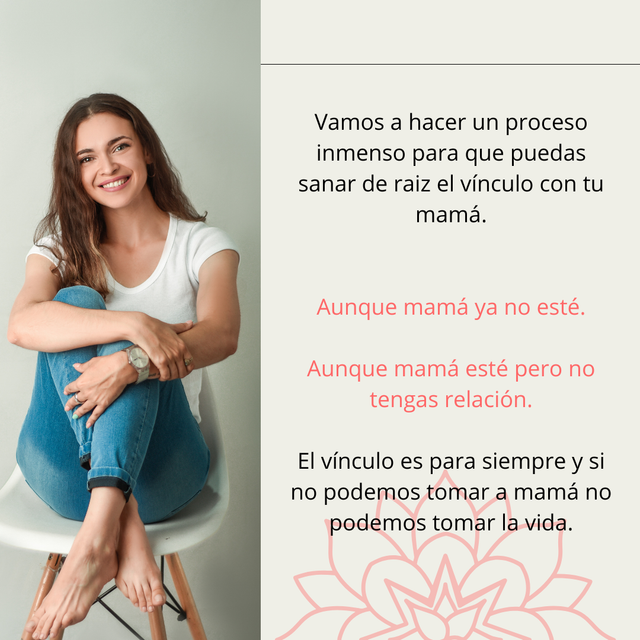 Te invito a que hagamos juntas este gran proceso de transformación donde vas a lograr estar en paz con ese vínculo, más allá de si mamá ya no está en este plano, o si quizás ni siquiera sepas quien es mamá, o así hayas decidido o no tener relación, o la veas todos los días, una cosa es la relación y otra es el vínculo. El vínculo es para siempre.